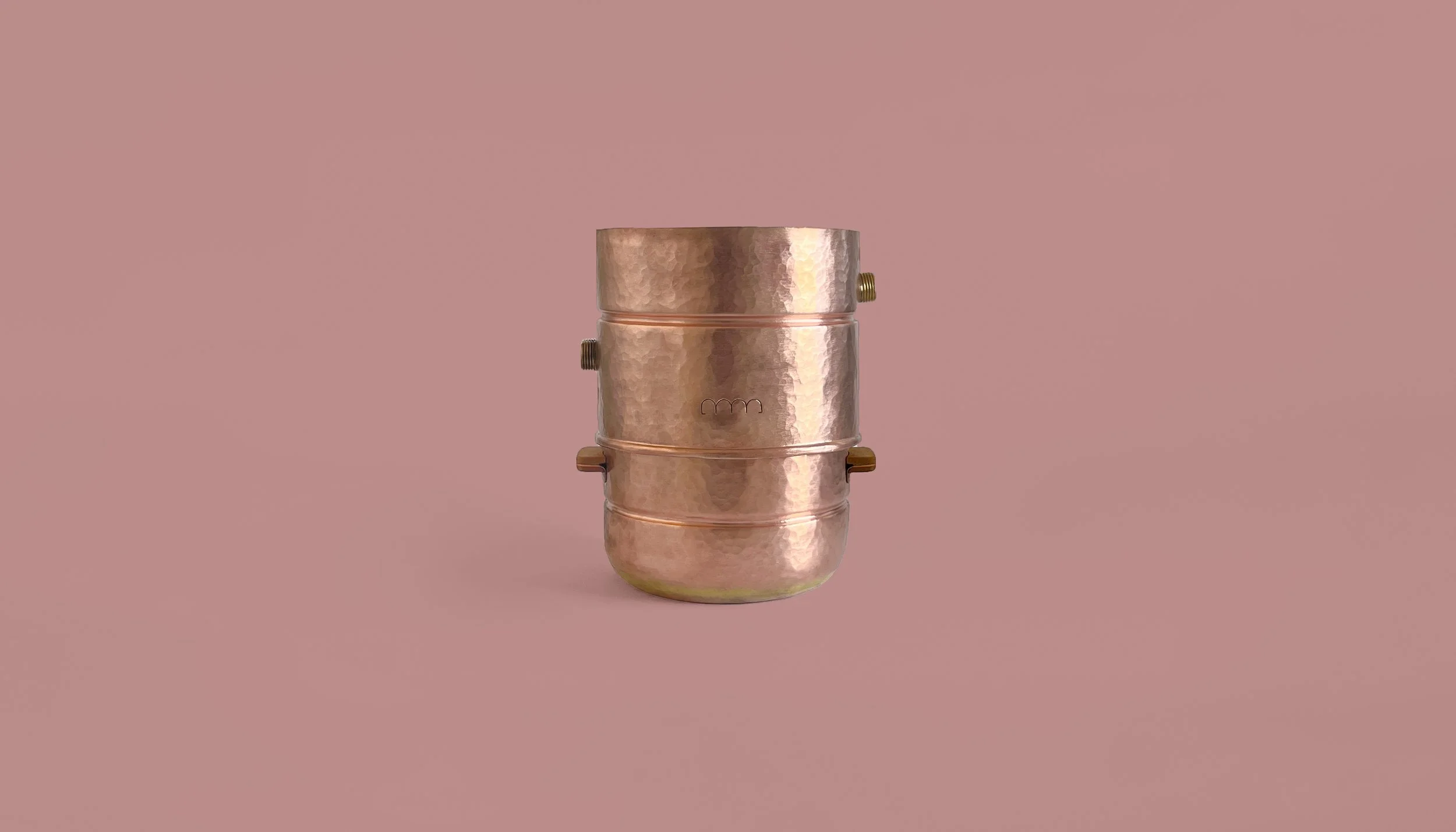 Matériaux : Cuivre rouge, Bois de hêtre, Lin | Poids : 2,2 kg | Hauteur : 27 cm | Diamètre : 17 cm | Capacité : 3,8 litres.